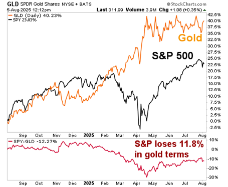 This is important when you look at a performance chart of gold and the S&P 500 over the past year.