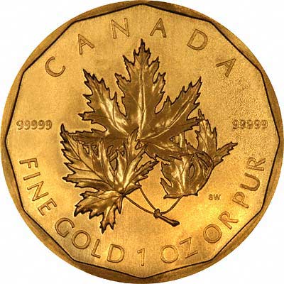 The Canadian Gold Maple Leaf, produced by the Royal Canadian Mint, contains one troy ounce of 0.9999 fine gold, making it one of the purest gold bullion coins available anywhere in the world. That’s 24-karat gold, compared to the American Gold Eagle’s 22-karat composition.